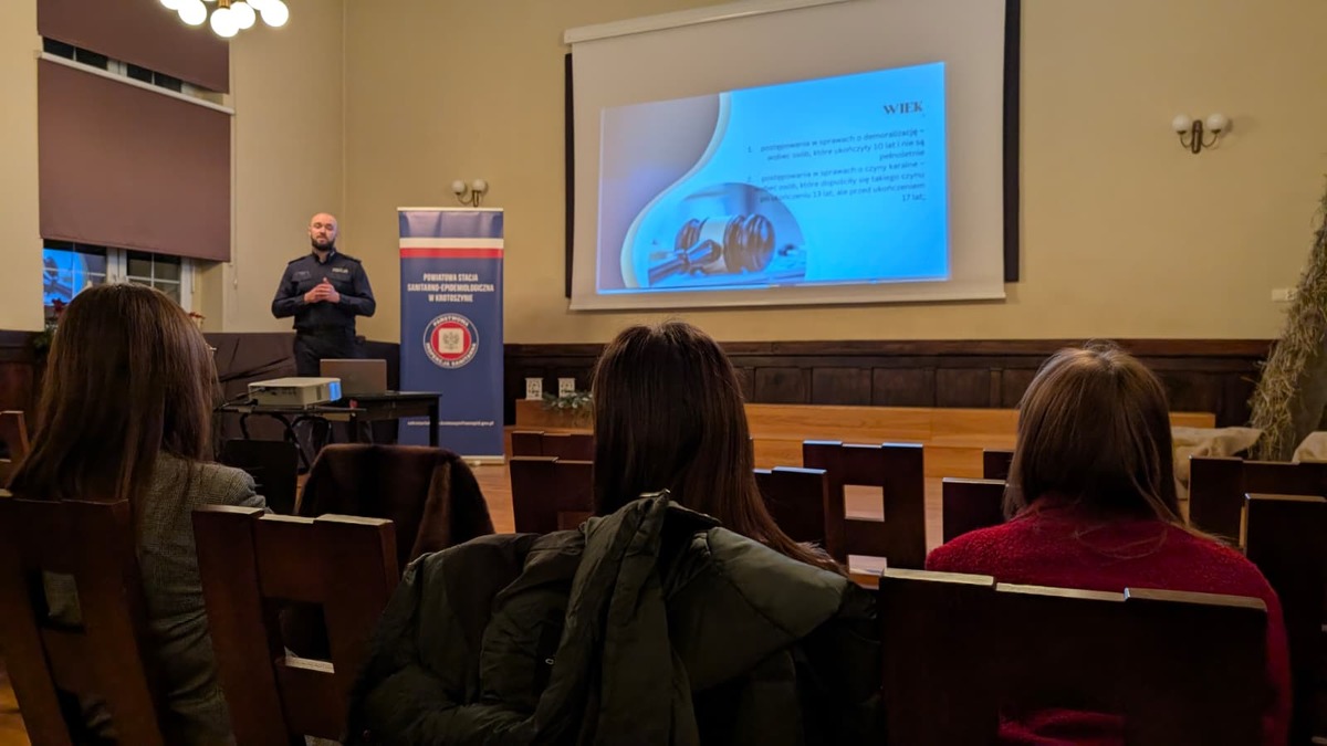 Współczesne zagrożenia, przed którymi stają dzieci i młodzież, wymagają od opiekunów nie tylko czujności, ale przede wszystkim rzetelnej wiedzy. W odpowiedzi na te potrzeby, funkcjonariusze Komendy Powiatowej Policji w Krotoszynie przeprowadzili prelekcję dla rodziców uczniów krotoszyńskiej „Piątki”. Głównym celem spotkania było podniesienie świadomości dorosłych w zakresie ryzykownych zachowań młodych ludzi oraz ich konsekwencji prawnych.