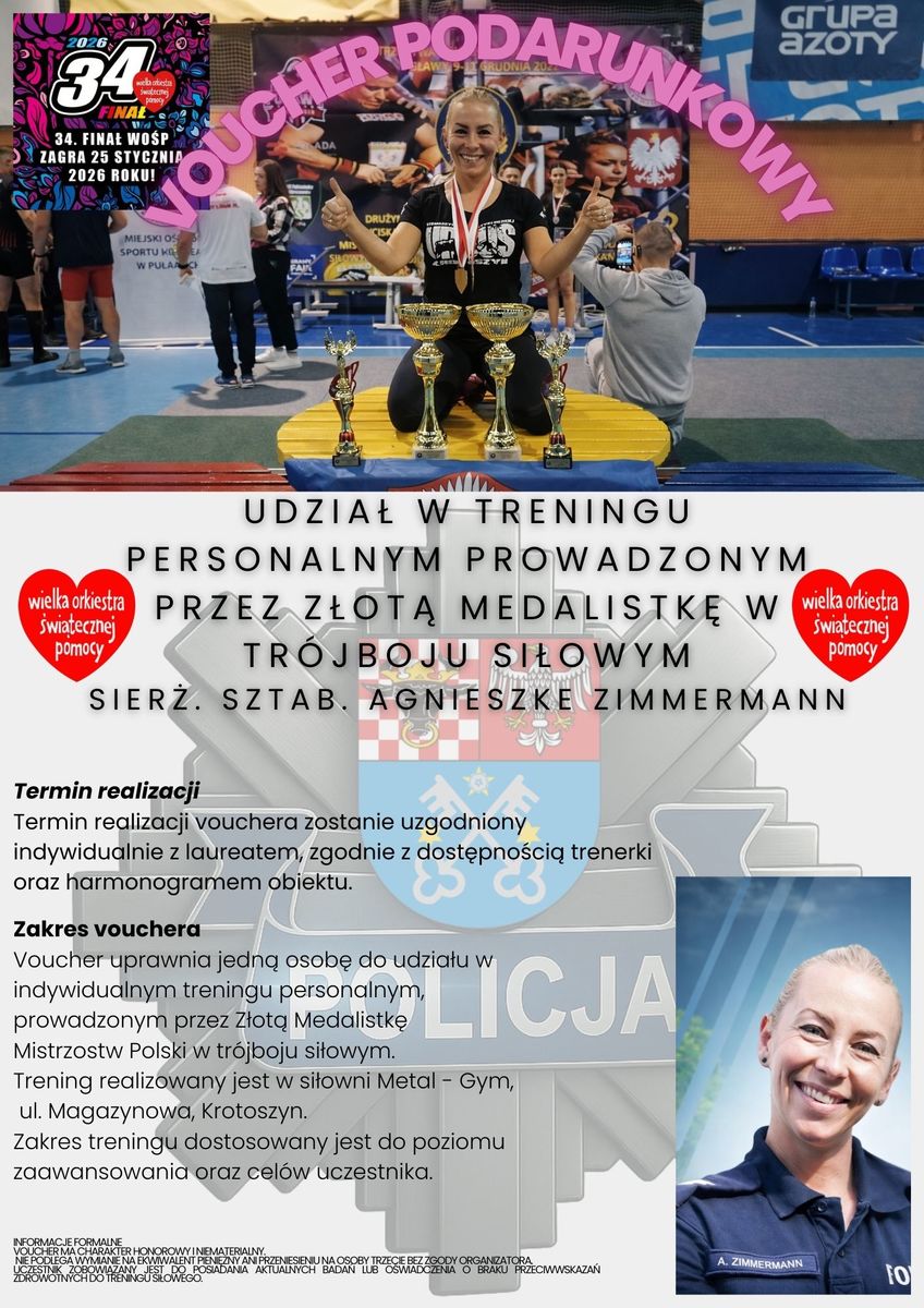 - Voucher na trening personalny z policyjnym instruktorem – idealna okazja, by sprawdzić swoją kondycję i poznać techniki przygotowania fizycznego mundurowych.