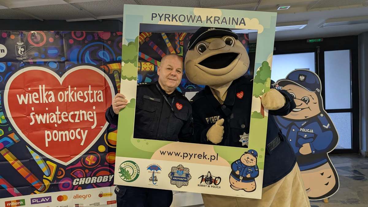 Sierżant Pyrek w Kinie Przedwiośnie Jednym z centralnych punktów dzisiejszych działań jest Kino Przedwiośnie w Krotoszynie. To właśnie tam policjanci z Zespołu ds. Profilaktyki Społecznej oraz maskotka wielkopolskiej Policji – Sierżant Pyrek – spotykają się z najmłodszymi uczestnikami finału. Dla wielu dzieci jest to pierwsza w życiu zbiórka, dlatego obecność policjantów oraz uśmiech Pyrka są nieocenionym wsparciem, budującym poczucie pewności i bezpieczeństwa u młodych darczyńców.